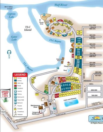 Our home park is TLC Wolf River in Pass Christian, Mississippi. If you purchase our Coast to Coast membership then TLC Wolf River will be your home park. They have 140 full hook-up RV sites, waterfront RV campsites, a swimming pool, play area for children, a boat launch, laundry, Wi-Fi, and clubhouse with cable TV and showers.