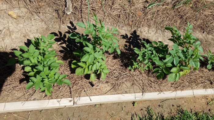Now, most are gone which is what they are supposed to do. The potatoes growing under the ground take what they need from the plants above ground until there is nothing left of the bush.
