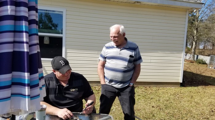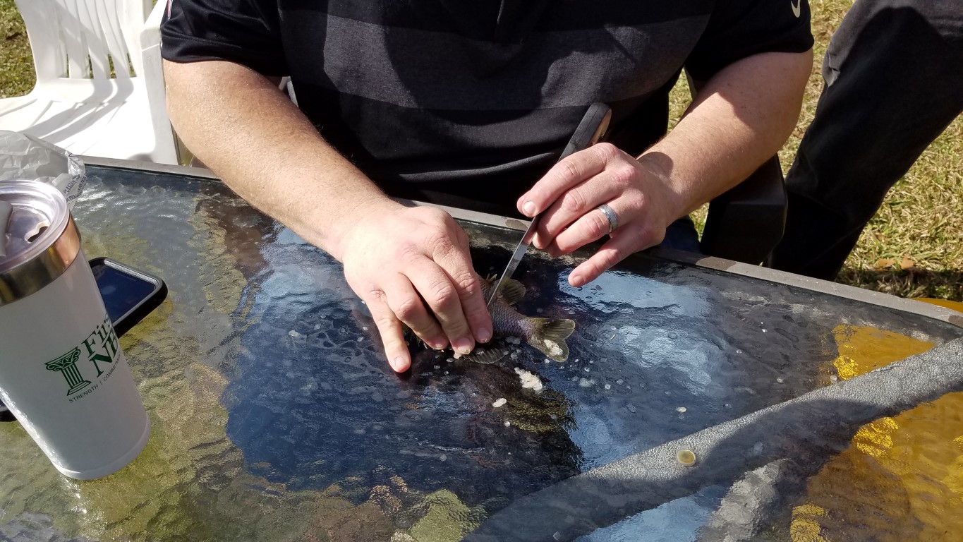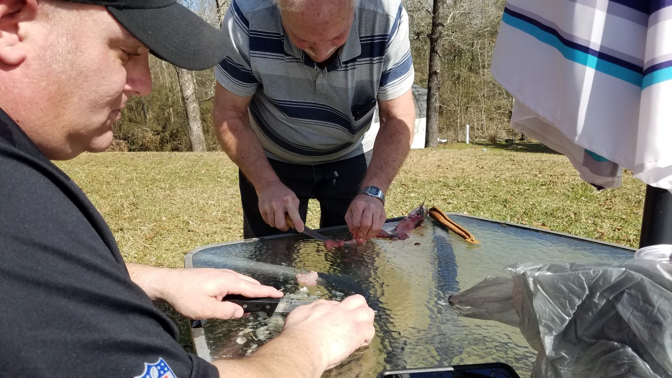 It’s been years since Chip cleaned fish so Roy gave him a refresher course and he did great!