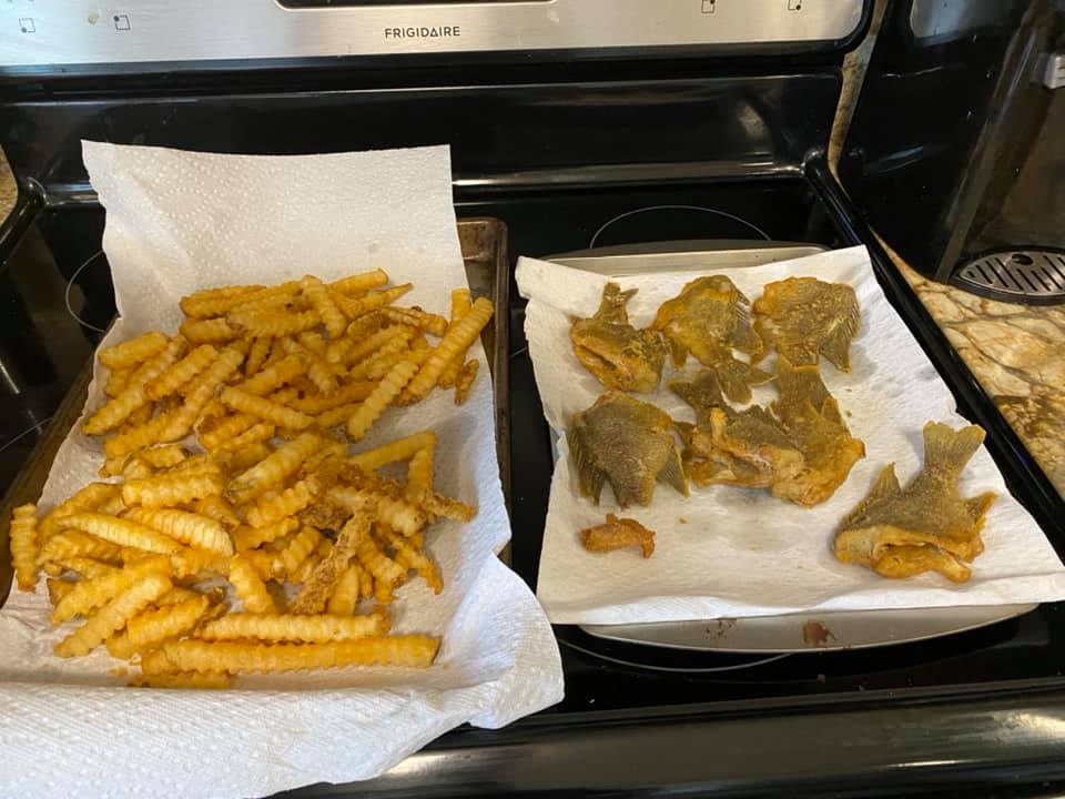 Chip brought some french fries and cooked those and our big mess of fish! He did all the cooking and it was quite a treat for both Roy and I.