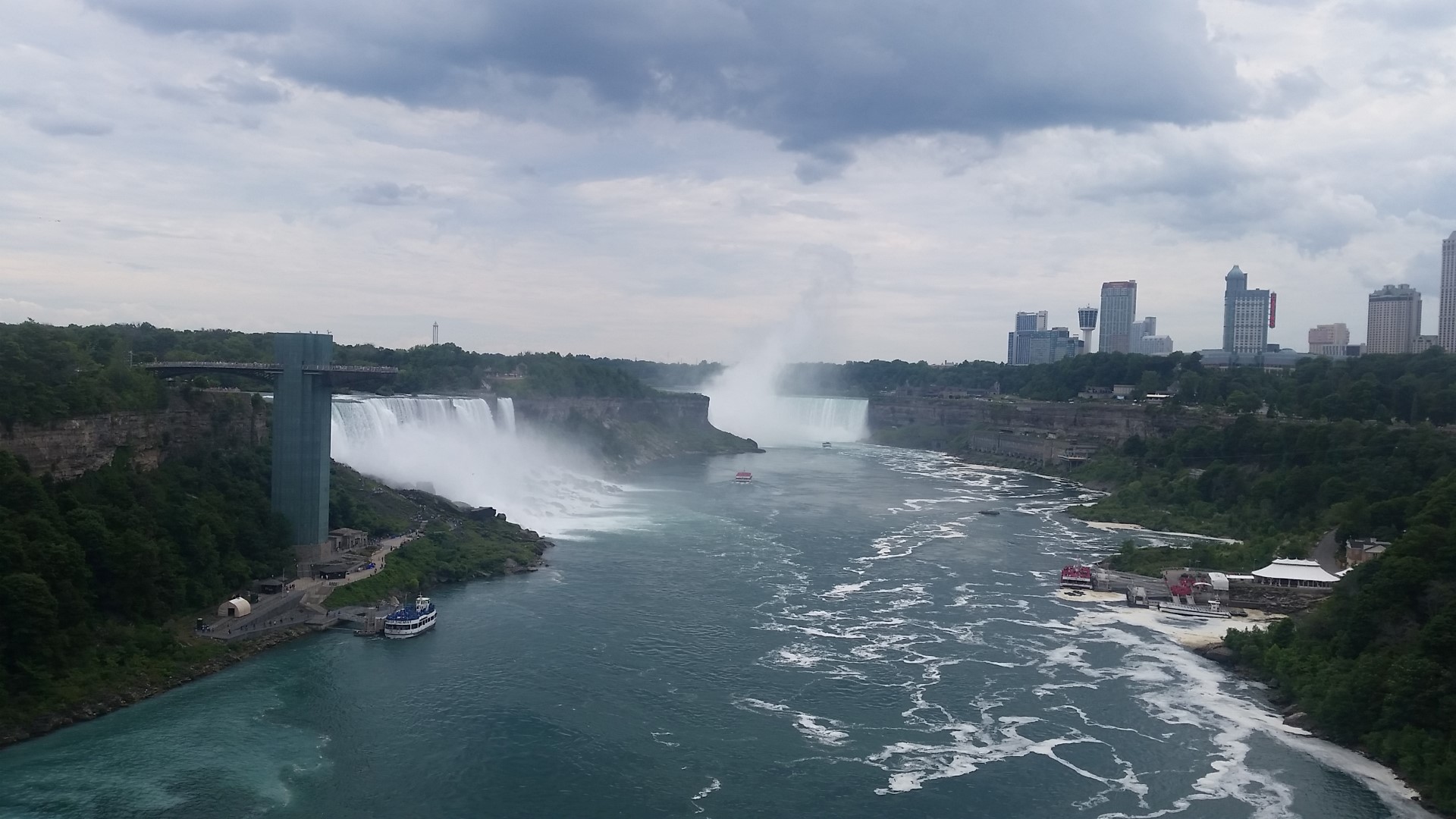 The Maid of the Mist is a cruise boat that goes down the river leads to the bottom of the falls and pauses for a few minutes in the middle of the horseshoe falls where the mist was the thickest. This is a really good photo I found that shows the horseshoe falls from the air. Puts it into great perspective. Next, I’ll share what that experience was like.