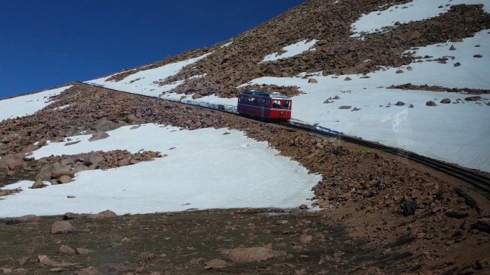 Since Roy drove up and down the mountain the day before, he really didn’t get to see all the amazing sights so one day after the first visit we took the Pike’s Peak COG Railway. No driving for Roy and clear skies this trip! We saw very different things on the train ride. It was fun though and less stressful than worrying about our brakes burning up going up and down the mountain.