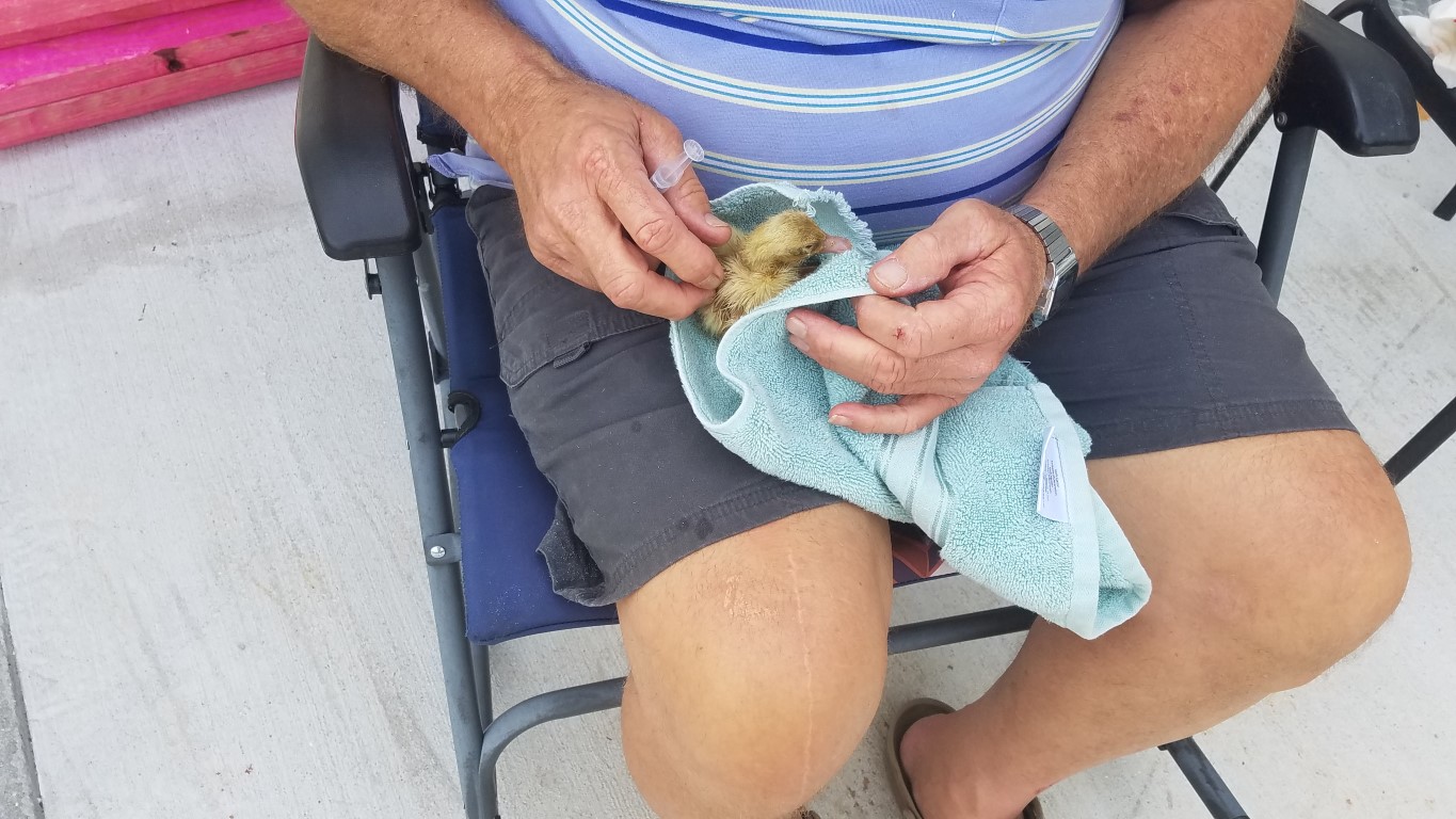 Before this happened, Roy spent a lot of the day nursing a newborn duckling that wasn’t doing well after it hatched. He named the precious little one Pip and kept him warm and fed with sugar water. Pip was just not strong enough to make it even with all the loving care Roy gave him.