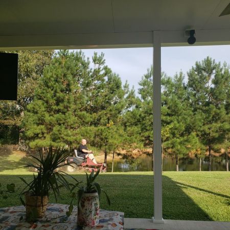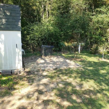 Chip was at home and when they arrived. They were at our house before I made it there and had the cage halfway disassembled when I got home. Come to find out the wife Lisa paints rocks like I do in their city of Natchez. I invited her to come inside and see my rock room. I loved showing it to her and gave her one of my rocks that says “Choose happy.” Off they drove with a trailer full of fencing, doors, and cover. I looked down the hill to where the cage had been and just hoped Roy was okay with me selling it. Roy knew how much it took to care for the ducks and I believe he was okay with it.