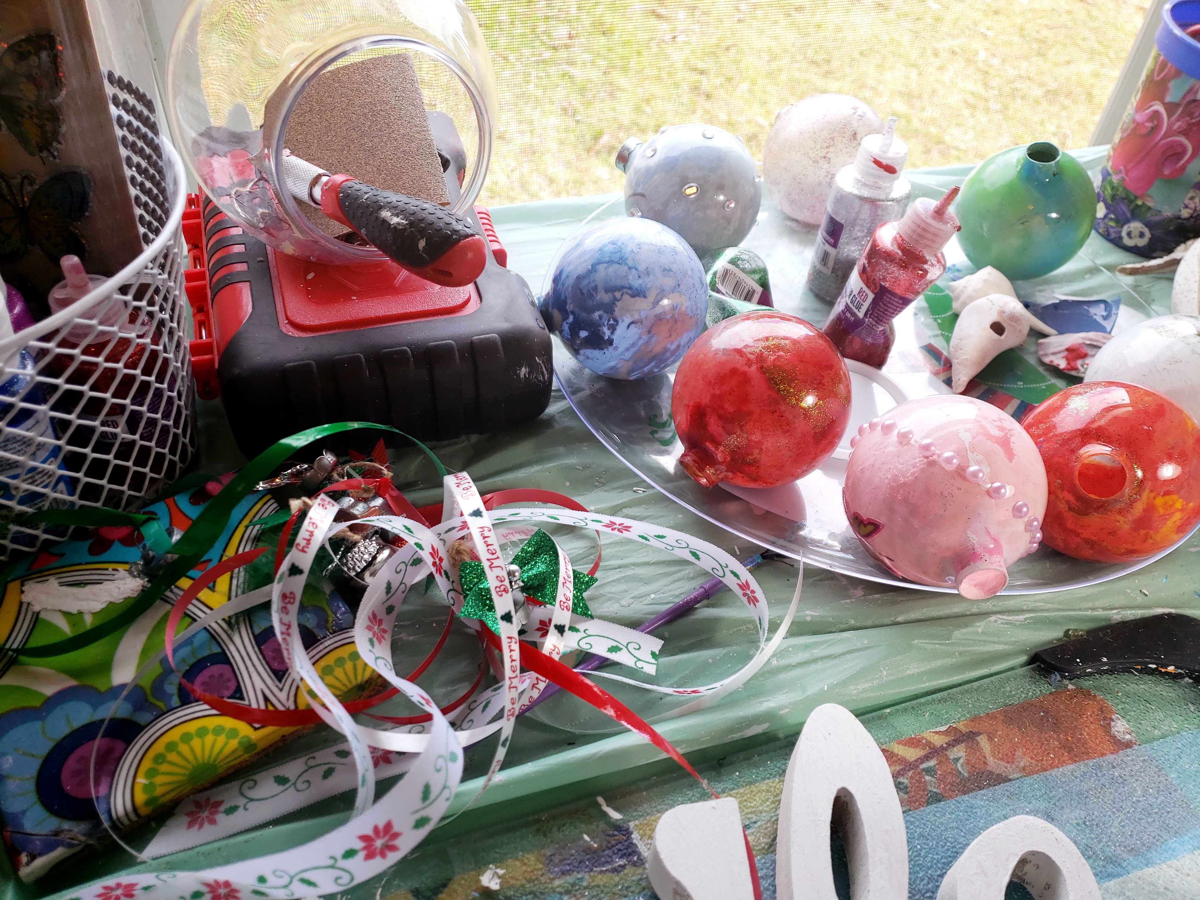 I worked on some Christmas decorations that I wanted to improve before putting them all away for the year. I removed all of the twine hangers and replaced them with colored ribbon that I hope will add more color to the tree. I probably spent 5 hours in my “rock room” creating, painting, fixing, and more.