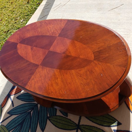 The coffee table (in the picture) had water spots on it from recent rain that blew up under the patio. Chip said that he heard that using mayonnaise on it would restore it. This is the beautiful table after 4 coats of mayonnaise. It is beautiful again! That was part of the really good day!