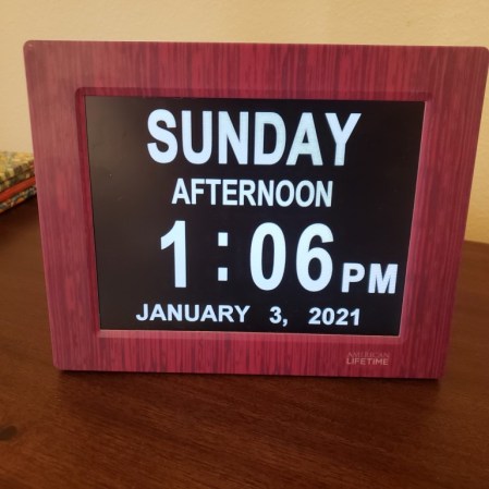 I am having a hard time knowing what day of the week it is lately. I keep thinking every day is Monday. Christmas and New Years haven’t messed me up before this year. I watch the news and the weather forecast where they show the days of the coming week but I forget it as soon as I see it, I know when it is Sunday because I go to church (online) but still I’m confused. I have a special clock that tells me what day of the week, etc. that it is but I still think it’s Monday even though the clock clearly says SUNDAY AFTERNOON 1:06 pm January 3, 2021.
