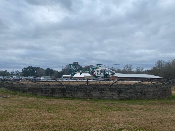 This is the picture Chip took when the helicopter with me in it arrived at North Oaks.