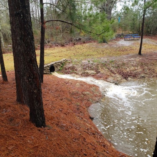 The pond is so high it is close to overflowing. A month ago it was very very low and after a couple of big rains, it’s filled back up.