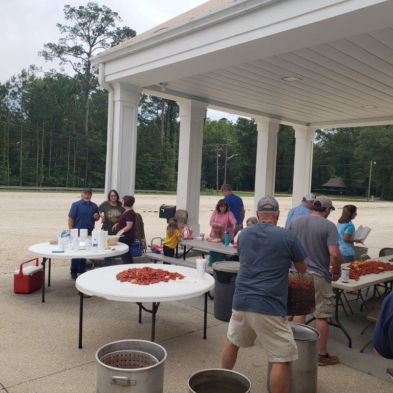Wow, this just keeps going on and on! Last but certainly not least, my Sunday School class had a crawfish boil outside at the church. It was really nice getting to fellowship with this great bunch of people! Chip brought me there and went to his friend’s house nearby while we ate and he got to eat when he picked me up later.