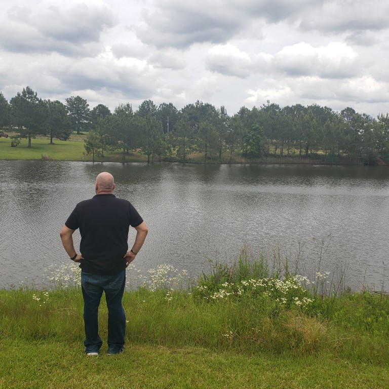 Chip did some work for our neighbor, Brandon. When Chip was finished he brought me over there to show me what he had done. I got to see his work but also got to see the pond from a different view. We are at one end and Brandon’s house is near the other end. The view from there is beautiful!