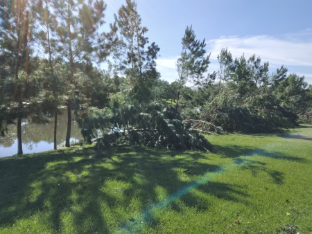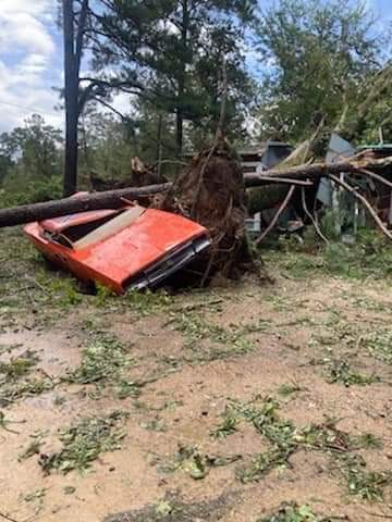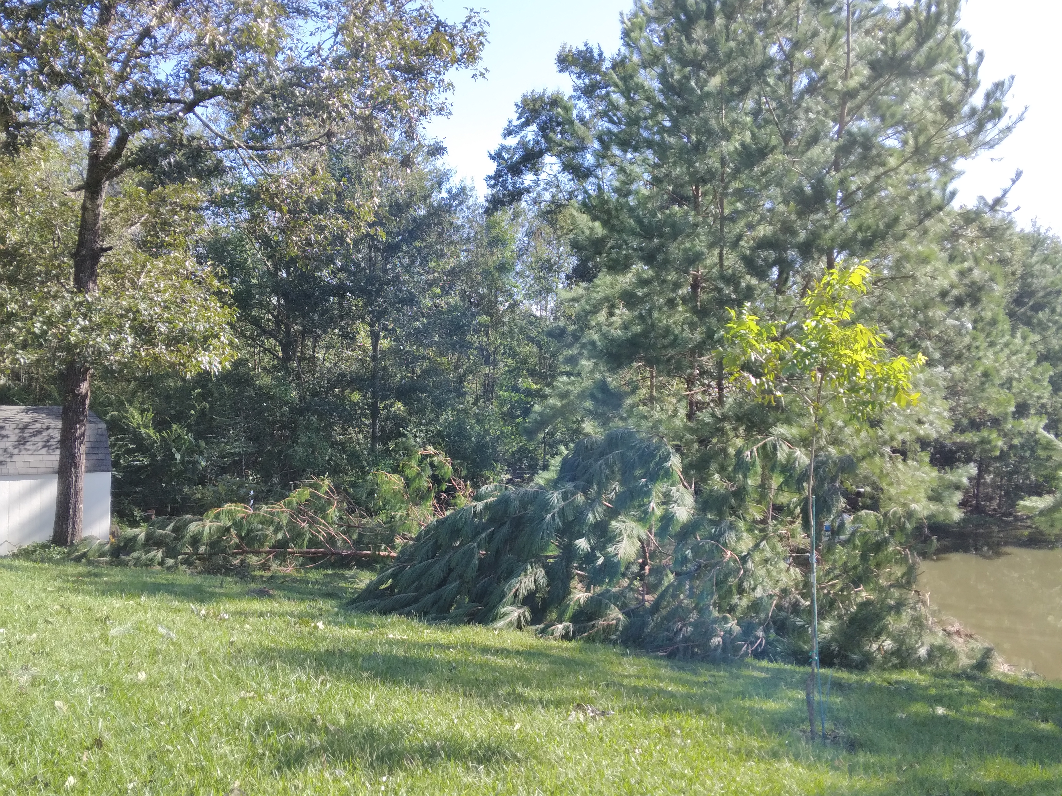 That’s just the mess at my house. Back in Amite the house and porch are fine!!! Some of the beautiful pine trees by the pond are down sadly. They will have to be removed somehow.