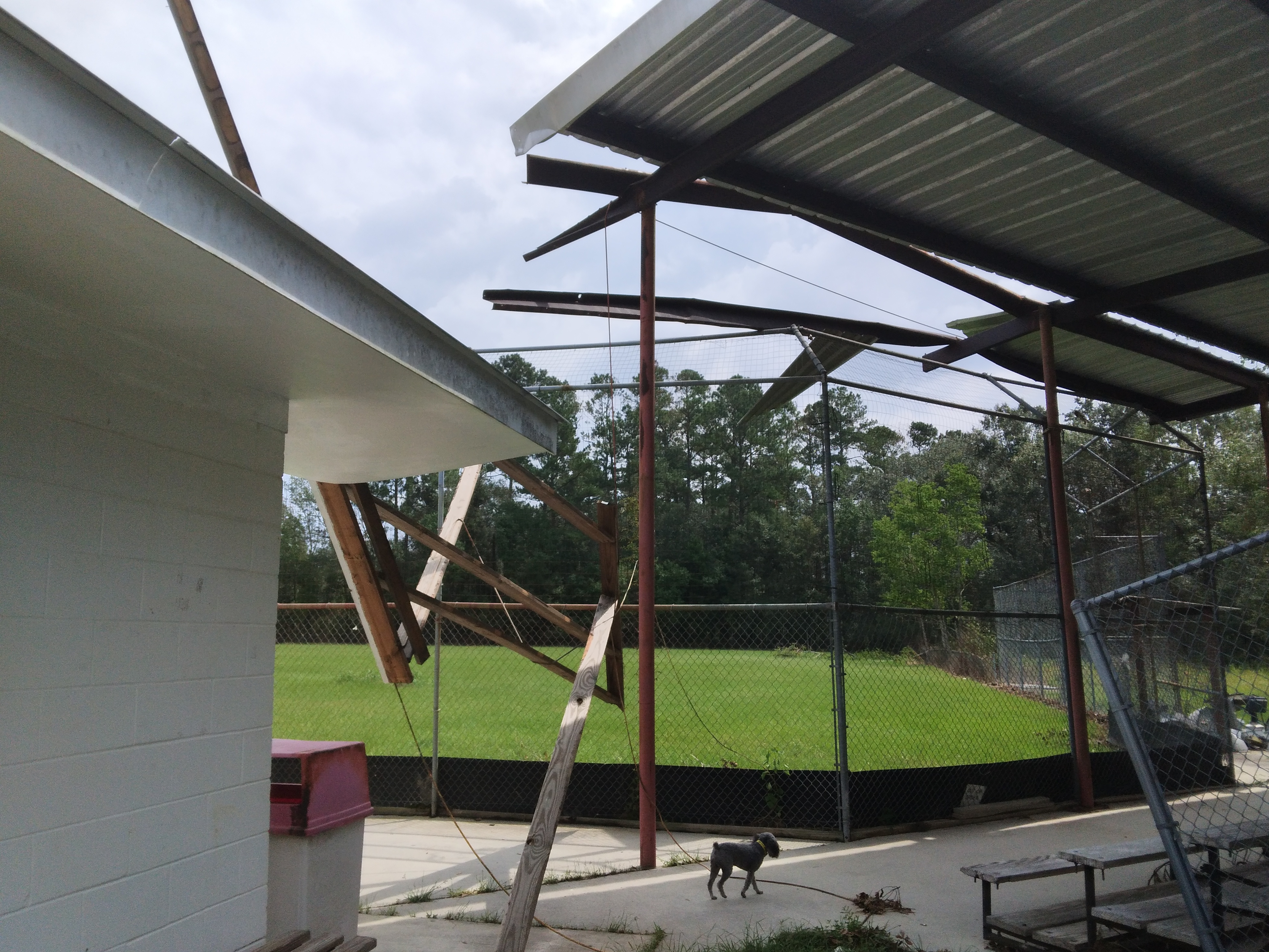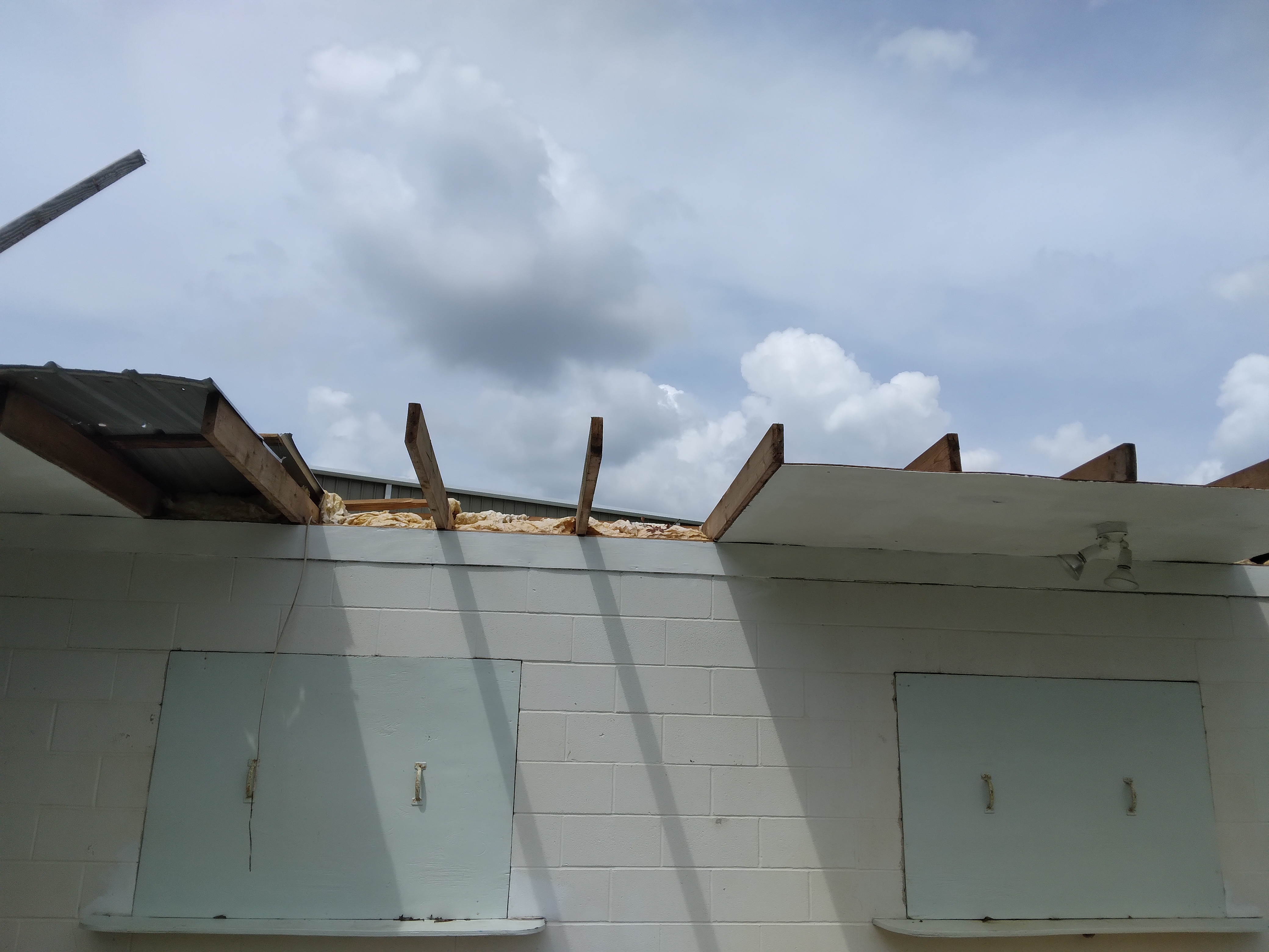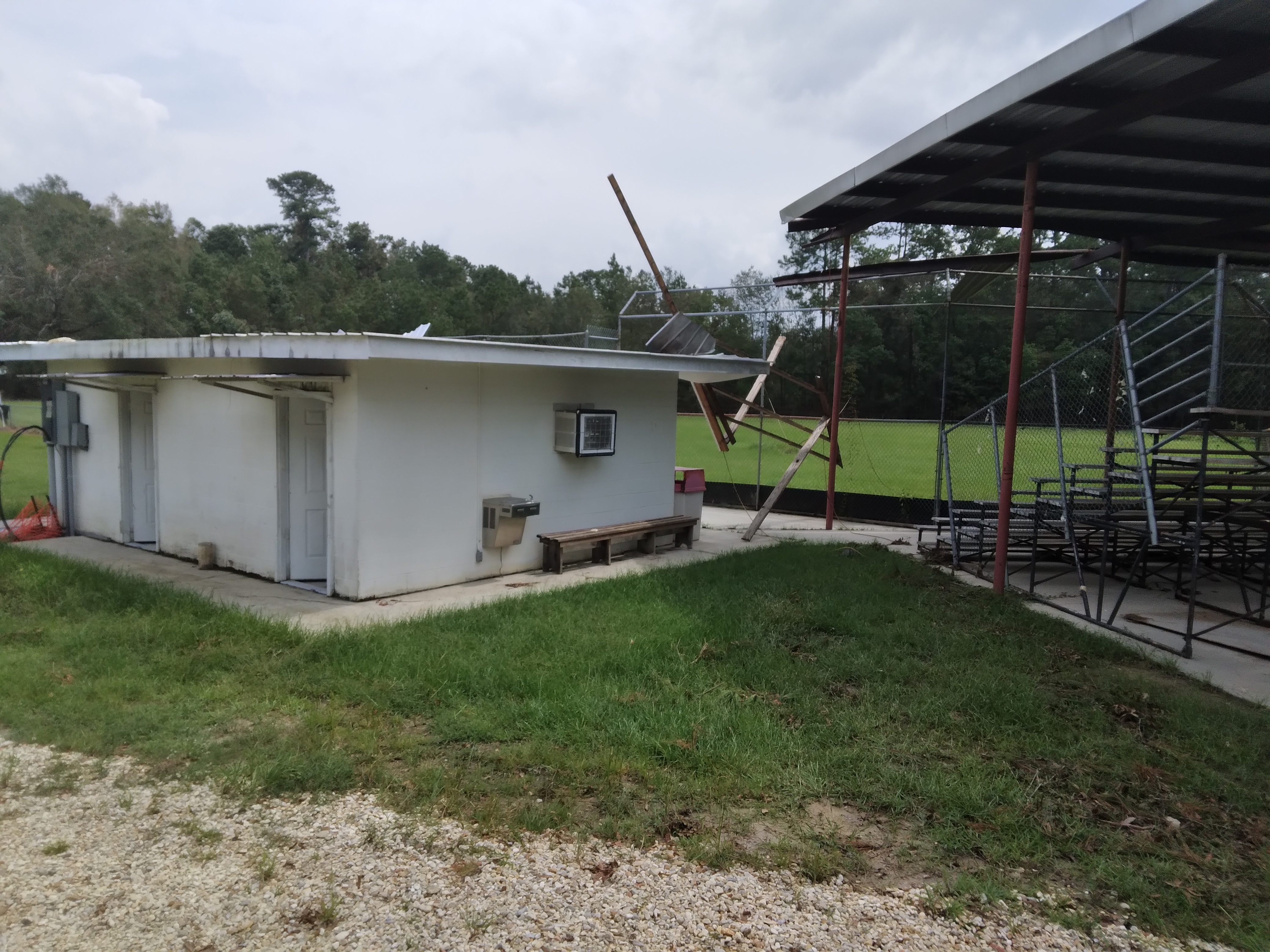 The first thing I noticed when we pulled up was the decent-size oak tree down by the softball field, which ultimately led to me seeing the entire concession stand roof had been ripped off by the wind.