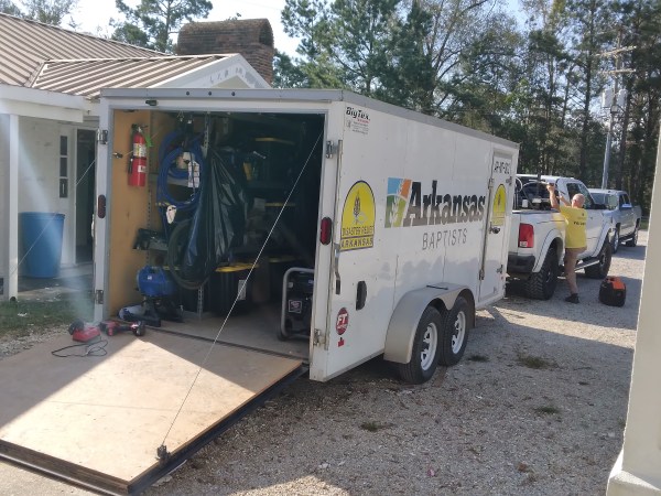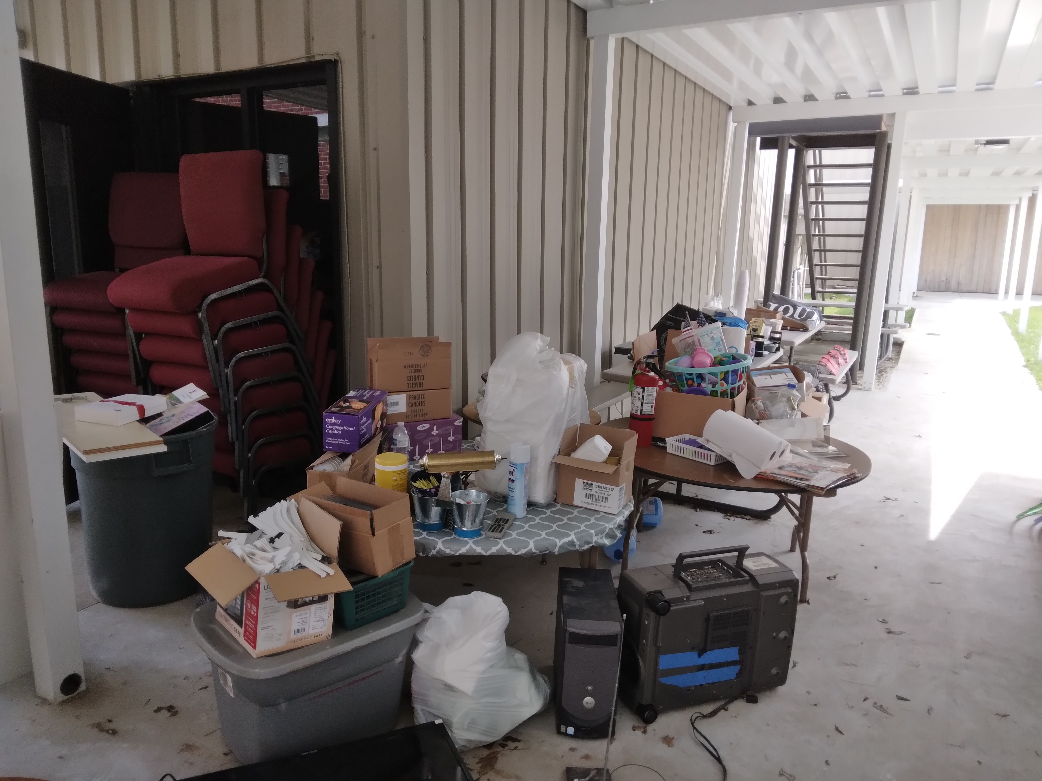 We passed by the graveyard, disarrayed by the many limbs of a nearby pine tree and we entered the education building through the side door. I immediately noticed the water on the floor, then the smell. I shined my flashlight into all of the rooms as we walked through the building assessing the damage. Thankfully the water didn’t get very high, but it was still hard to process in the moment. After that, I went into all of the other buildings to check for flooding. That’s when I realized the water in the youth building wasn’t just from a broken window. That same day, other churches began to reach out offering help however needed. Since then, we have had 3 groups come out and help from the following churches/organizations: Sandy Creek Baptist Church; Redemption Church of Lacombe; Arkansas Disaster Relief/ Arkansas BCM.