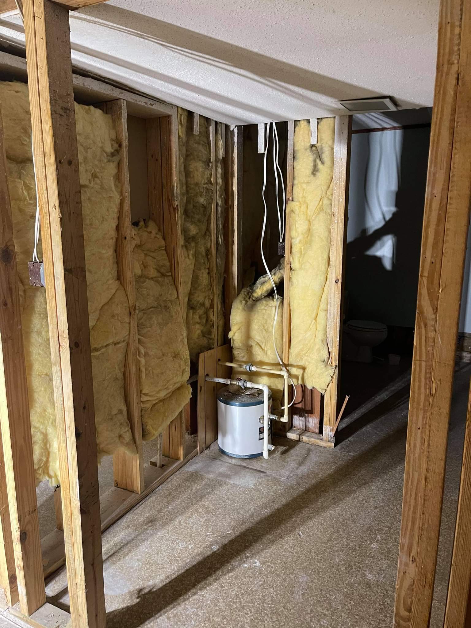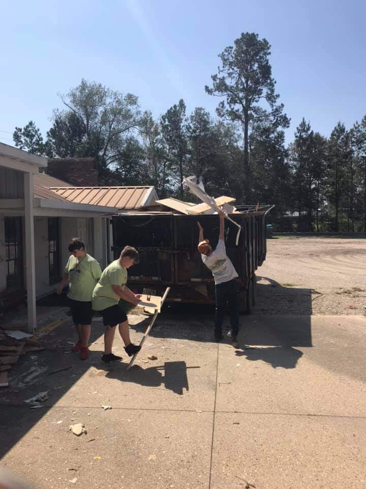 The SBC disaster relief sent a team of college students and a couple adults to work on the rest of our building. The sanctuary needed the bathroom completely gutted as well as the storage closet adjacent to it. The youth building needed more sheetrock removal as well. They took all of the demolished material and trash to the road.
