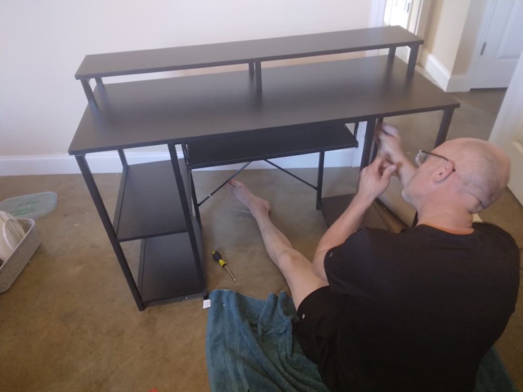 I purchased a new desk for the rock room and Chip put it together. Now to get the computer things set back up. I’ll be bringing the server to Best Buy this week to try to recover our whole lives worth of photos that I can’t get to.