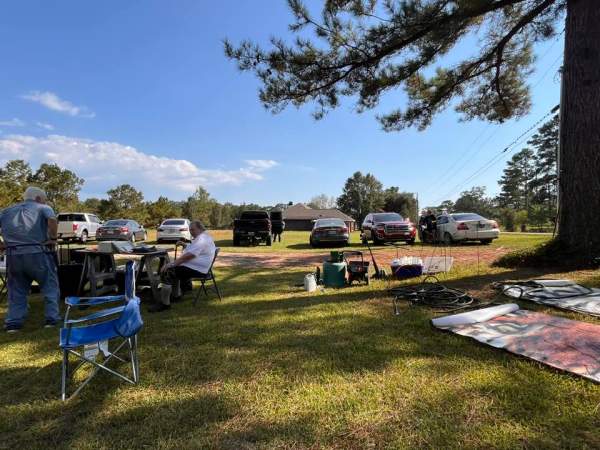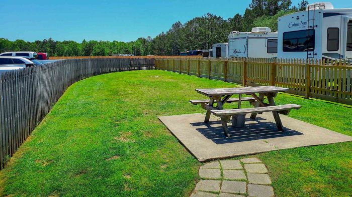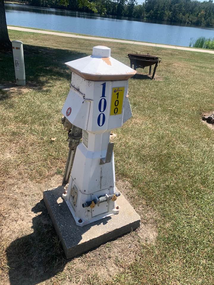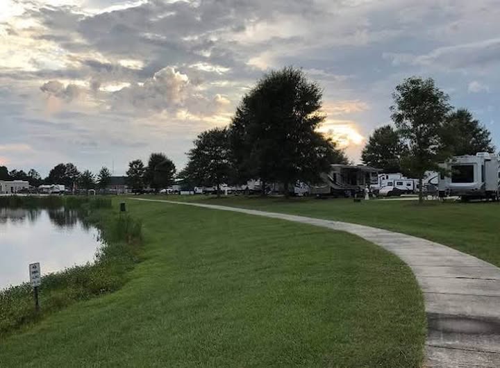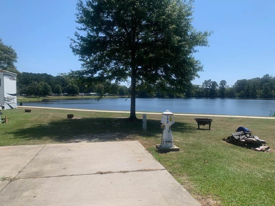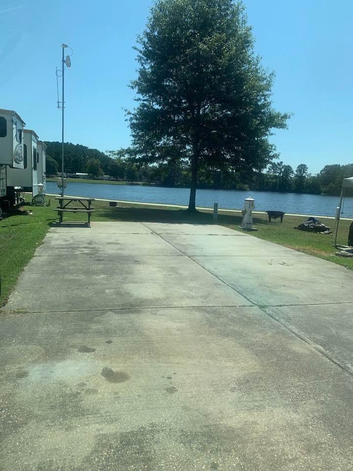 There are RV sites to the right and to the left of ours, so it’s not all spaciously open. The one to the left is another Montana! The one to the right is an Alabama fan, so we’ll have to deal with that! I introduced myself to the husband, who had on an Alabama t-shirt and had a concrete elephant with an Alabama logo on it, so they are pretty serious! He did seem very nice. The first thing I told him was that we are LSU fans! We’ll see how that friendship goes!!