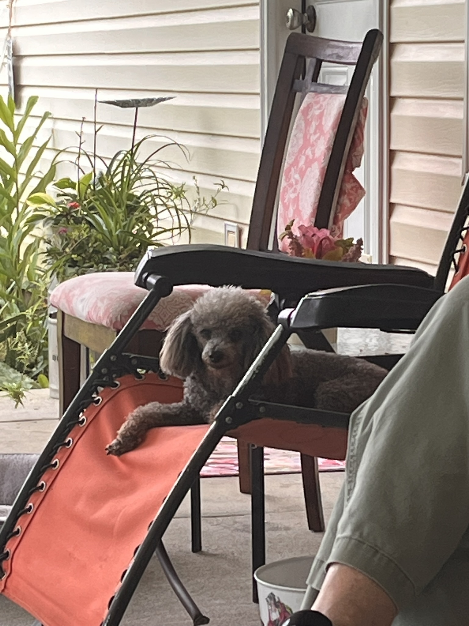 When we were outside he had his own reclining lawn chair he would lay in watching everything from that one spot.