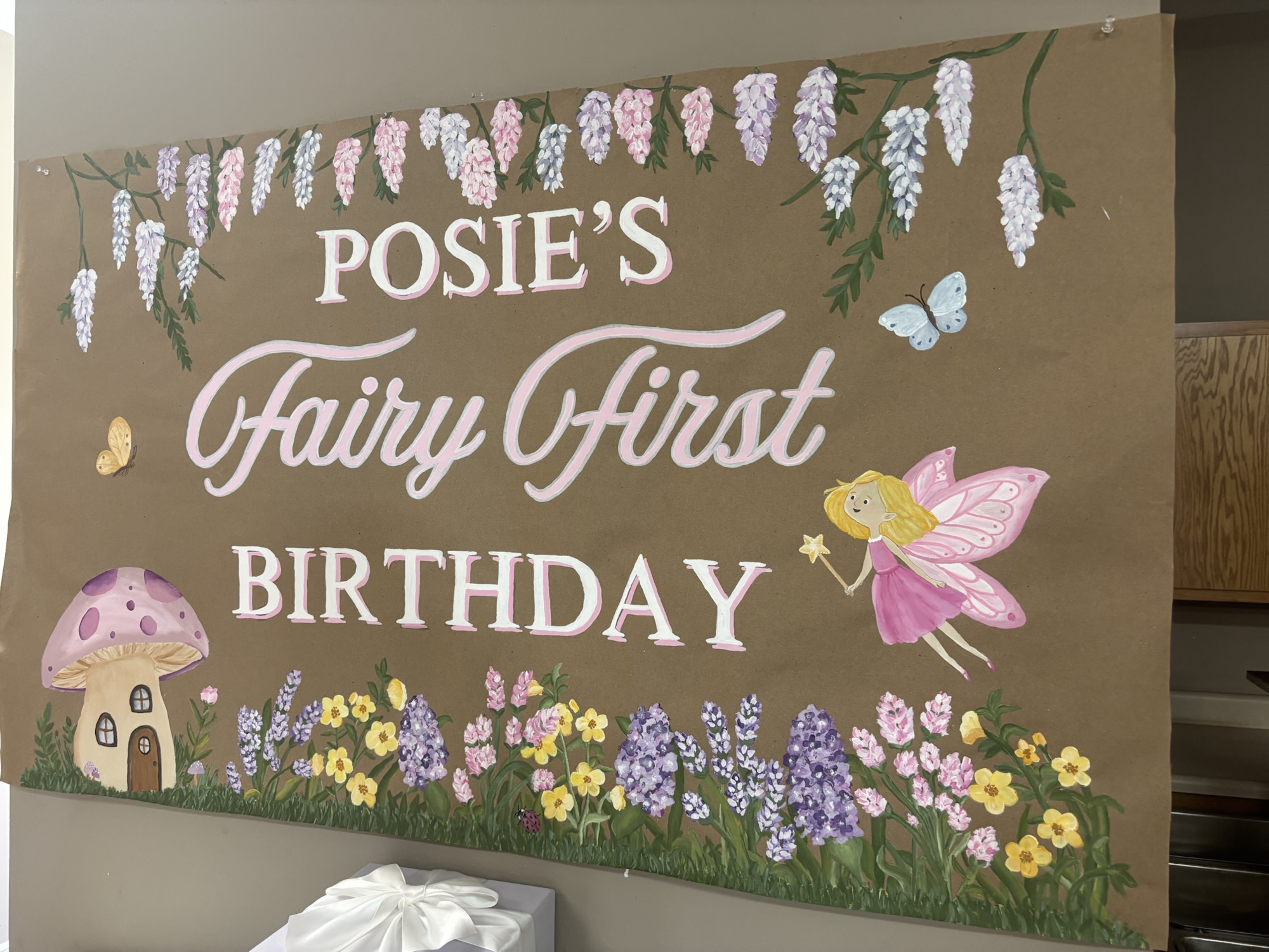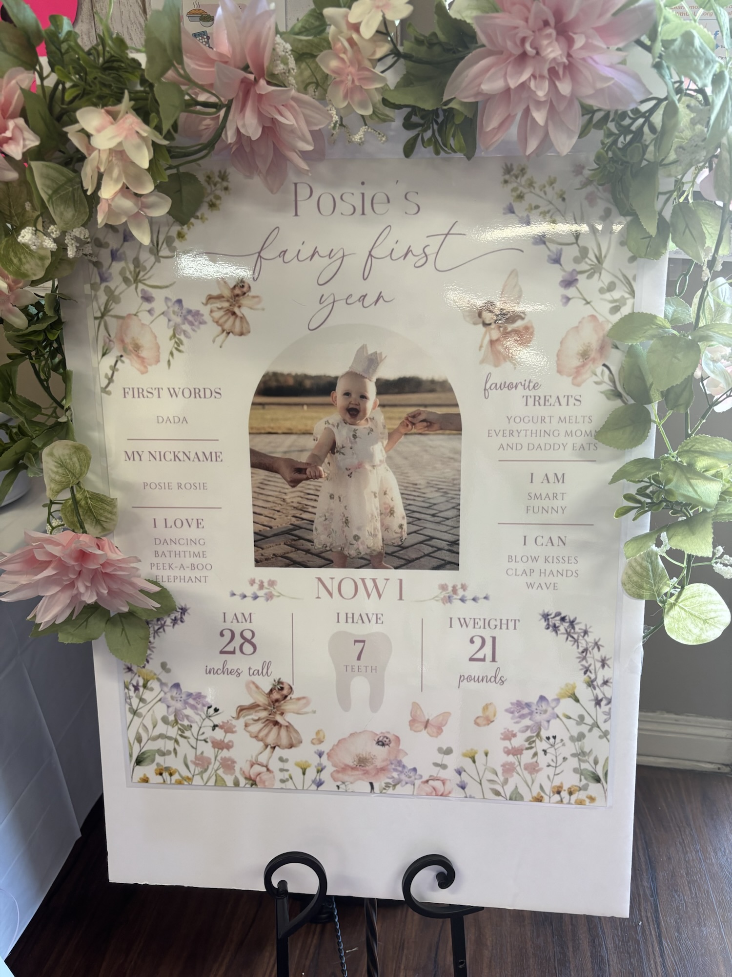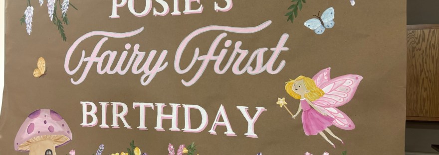 There were fairy wings, flowery hair decorations and wands for the little girls, amazing food (loved Debbi’s chicken alfredo!!), fairy cake, cupcakes with Posie’s photo on top and the decorations were perfect!